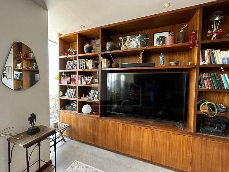 Destacan sus libreros de madera hechos a la medida, que aportan un estilo único y cálido al espacio.